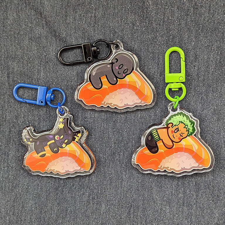 Here you'll find a list of what commission types I offer, along with prices and examples. I accept any type of character (human, anthro, robot, etc), but I reserve the right to decline any commissions that make me uncomfortable. You will receive two copies of the physical acrylic charm with epoxy. All prices include untracked international shipping, but it can be upgraded to tracked if you're willing to pay an extra £10.